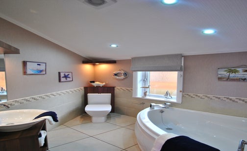 The master bedroom houses a king size divan bed and an en-suite with a large walk in shower and vanity unit. Where as the second and third bedroom have full size single divan beds. The main bathroom has a corner shape bath and is hand finished with half height tiles.
